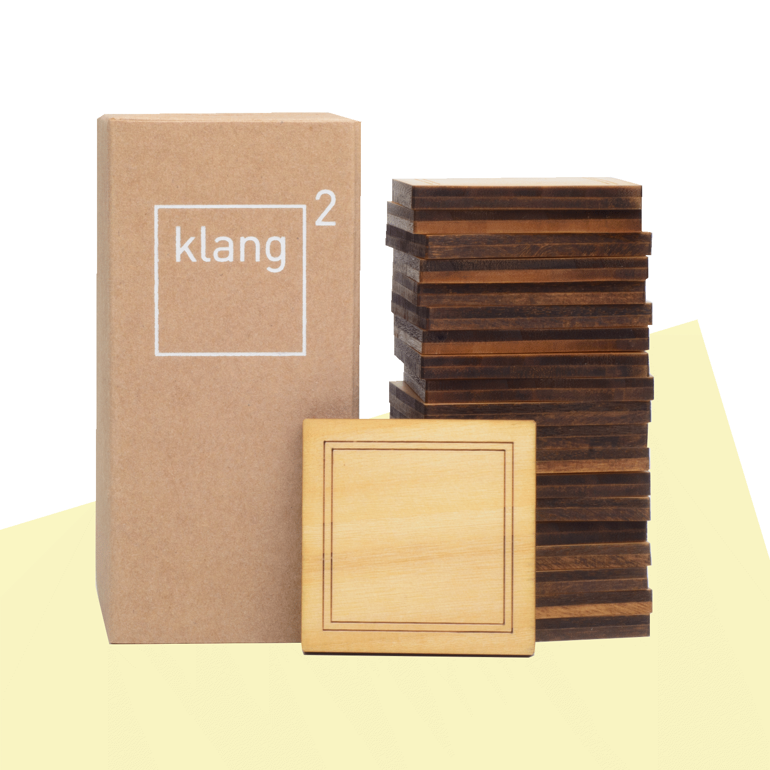 20 elegant sound squares made of high-quality tonewood (black poplar) and the corresponding app.