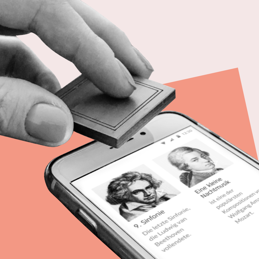 The game consists of 20 elegant sound squares made of high-quality tonewood (black poplar) and are equipped with an NFC chip. The associated app is available free of charge for Android and iOS. It reacts to our sound squares. These games are included in the app.